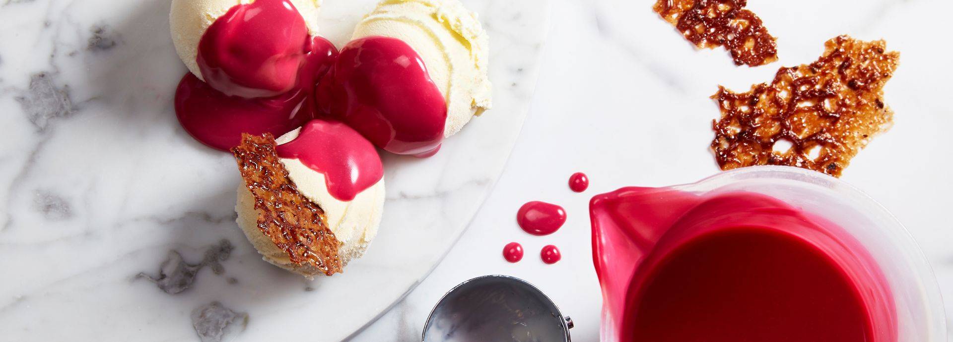 This ruby chocolate sauce recipe is a great match with any dessert. You can serve it with any dessert, ranging from light creamy mousses to indulgent dark chocolate ice cream. It will always add a unique indulgent touch with fruity and sour notes. And it pops on the plate.