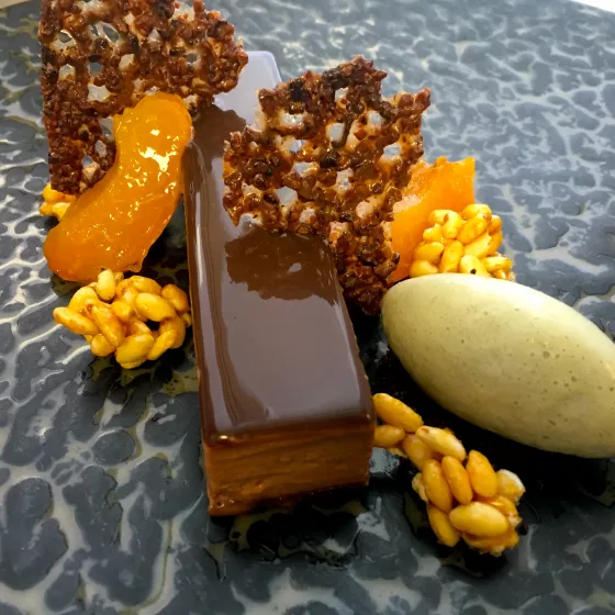 Or Noir Chocolate delice, poached apricot, matcha Ice cream by Heather Kaniuk News Can you imagine the indulgency of the wonderful chocolate accented by the sweet sour flavour of poached apricots melting on your tongue? Well, here you have it. We are sharing the recipe by Heather Kaniuk, from the London Shangri-La. Or Noir Chocolate delice, poached apricot, matcha Ice cream by Heather Kaniuk